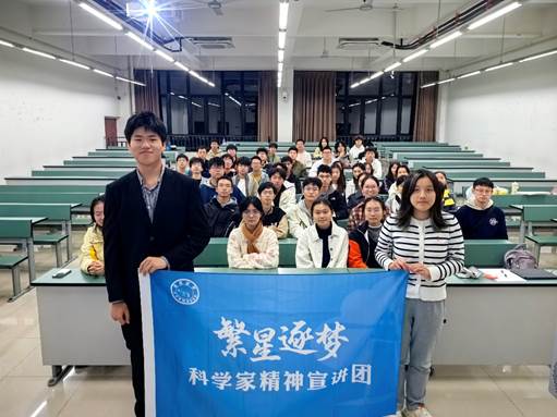 在犀浦校区X4158开展新生入学教育系列之“学习科学家精神”专题讲座。此次讲座由“繁星逐梦”科学家精神宣讲团主讲,本科2025级辅导员曾祥珂、向祎斐及全体同学共同参加。