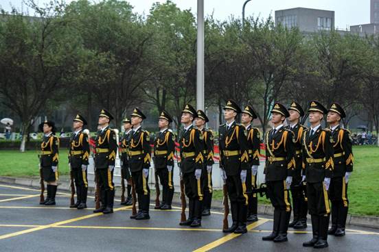 清晨,飘着小雨,衣装统一的师生陆续抵达现场,大家精神抖擞,整队有序。升旗仪式准时开始,国旗护卫队迈着整齐有力的步伐,昂首阔步护送国旗走向升旗台,每一步都尽显昂扬风采。伴随激昂的《义勇军进行曲》奏响,五星红旗缓缓升至顶端,全院师生肃立致敬,齐唱国歌。随后,师生们欣赏了歌曲演唱《诗画中国》,并齐声合唱《我爱你中国》,将对祖国的无限热爱与美好祈愿融入歌声之中。