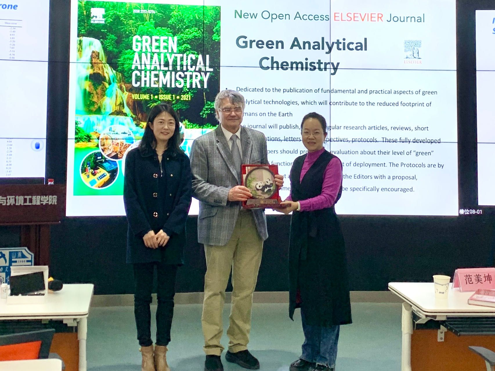 师生的学术视野,增进了大家对环境分析化学的认识和了解。最后,Pawliszyn教授与龚正君院长交换了礼物,并与青年教师和学生们进行了热烈的讨论。