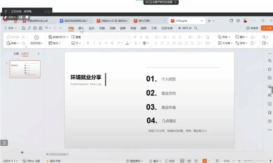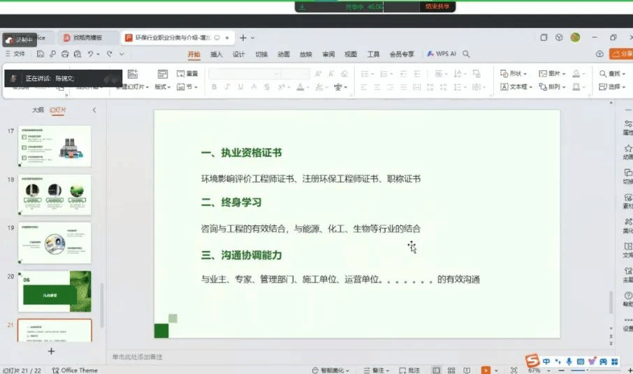 第三位分享的是尹朝阳。尹朝阳2008年就读于西南交通大学,现就职于四川省生态环境科学研究院,任固体所副所长。尹朝阳学长从环境学科就业方向的角度出发,为同学们分析了各个职业选择的优势,帮助同学们梳理不同职业的工作内容和所需要的条件,分享他在就业时的经验和想法。他特别强调了同学们要发挥学习的主观能动性,培养终身学习的观念,主动积极学习行业最新的政策和方法,紧跟国家发展步伐,以此来提高职场竞争力。
