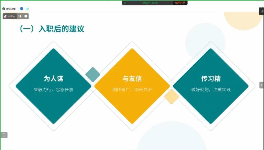 第一位分享的是朱俊秋。朱俊秋2000年本科就读于西南交通大学,现任四川省冶勘设计集团生态环境工程有限公司副总经理。朱俊秋学长从就业方向、专业类型、就业形势等方面展开分享,详细分析了现阶段环境行业的良好发展势头和前景,并向同学们提出了以下三点期望:为人谋,要果毅力行、忠恕任事;与友信,要胸怀宽广、同舟共济;传习精,要做好规划、注重实践。