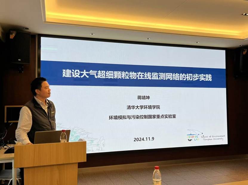 蒋靖坤教授分享了团队在“建设大气超细颗粒物在线监测网络的初步实践“。大气中新生成的纳米颗粒物质量低、易损失,传统仪器难以有效地测量其组分,这阻碍了对新粒子生长过程的认识,超细颗粒物监测需求日益突出。蒋靖坤教授针对建设大气超细颗粒物监测网络领域中存在的荷电分布变化复杂、数据对比难、经费需求高等挑战开展了系列研究。蒋教授团队对基于德国GUAN监测网络的质控体系进行了改进,实现了捕捉实时荷电分布用于数据反演,通过研发的通用冷凝粒子计数器(CPC)实现扫描和总数浓度模式切换,自主研发的粒径谱仪及相关配套设备在全国多个城市站点稳定运行,并可以反映出不同站点的特征。进一步,蒋教授团队还发展了颗粒物荷电技术、静电筛分技术和软X射线化学电离技术,研制了新型静电捕集热脱附化学电离质谱仪(TDCIMS),实现了纳米颗粒物分粒径化学组分的在线测量,在颗粒物生长机制研究中发挥了重要作用。超细颗粒物是大气化学领域的前沿研究,也是国际关注热点,蒋老师的报告很好地开拓了在座师生的科学视野。