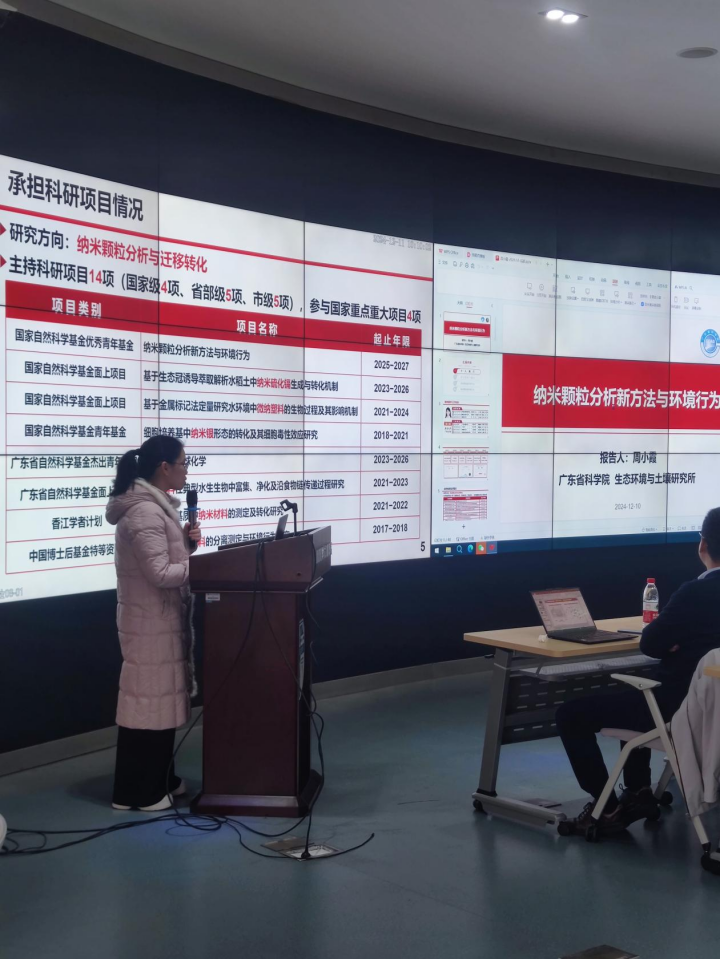 周小霞副研究员聚焦于当前纳米颗粒的分析与迁移转化,致力于攻克传统分析手段存在的局限性,并在“纳米颗粒分析新技术及其环境行为研究”方面分享了一系列创新性突破成果。新型污染物,特别是纳米颗粒与微纳塑料等,其潜在危害不容忽视,亟需构建一套完善的评估与治理体系以应对。环境纳米颗粒的风险筛查已成为国家层面应对新污染物挑战的重要需求。然而,当前面临的主要难题在于:环境纳米颗粒的赋存状态与分布特征尚未明晰,其迁移、转化及归宿机制亦不明确,且传统分析方法在纳米颗粒检测方面存在适用性限制。针对这些挑战,周小霞副研究员开创性地发展了蛋白冠诱导萃取技术,用于高效提取水环境中的痕量纳米颗粒,并在此基础上进一步提出了生态冠诱导萃取方法,以拓宽纳米颗粒的分析范围。通过金属标记塑料纳米颗粒的合成与表征研究,她深入揭示了塑料纳米颗粒在生态系统中的分布规律。环境纳米颗粒作为环境科学领域的前沿研究课题,同时也是国际社会广泛关注的热点。周老师的报告不仅为在座的师生提供了宝贵的科学洞见,更极大地拓宽了大家的学术视野。