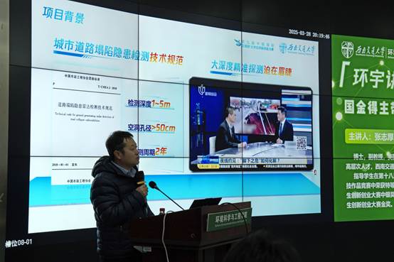 随后,张教授以我校在“互联网+”大学生创新创业大赛中的特等奖获奖项目“雷达智视——为城市交通生命线保驾护航”为案例,生动还原了从团队组建、技术攻坚到成果转化的完整历程。张教授强调跨学科组队和“硬件+软件”组合的重要性,同时还提出了“以赛助教,以赛助学”的观点,指出比赛需要老师与学生相互成就。