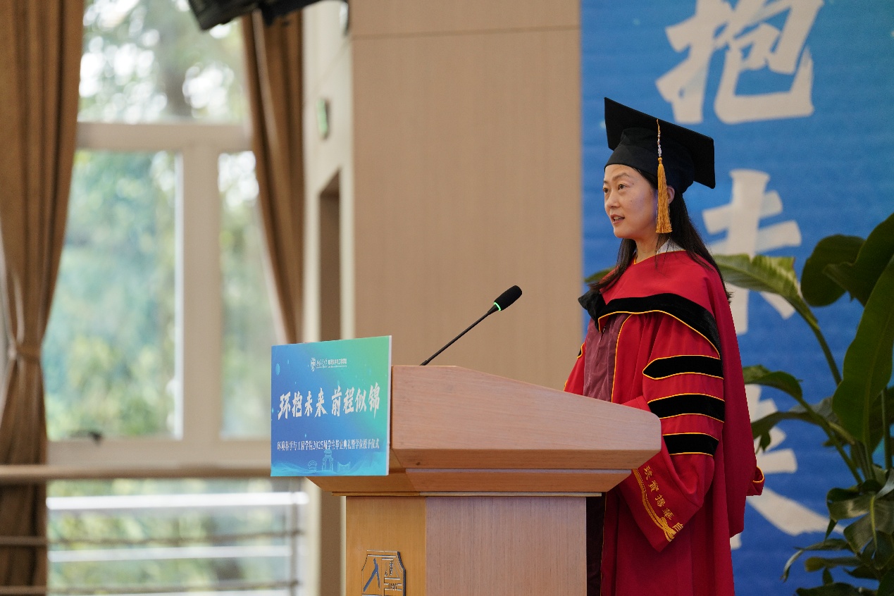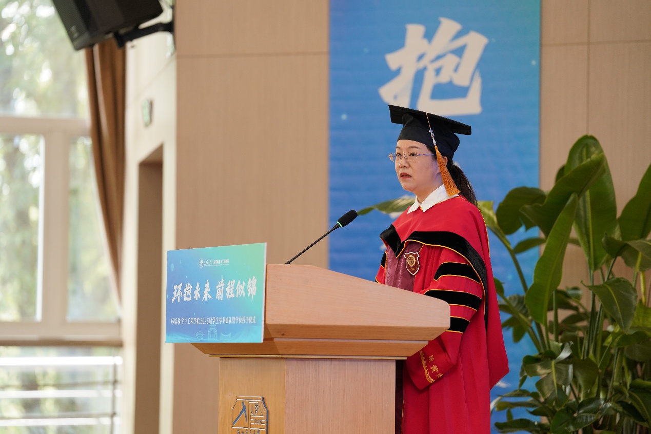 龚正君教授向全体毕业生致以祝贺:蝉鸣盛夏,正是鹏程万里时。她表示,同学们在学术科研、创新竞赛、志愿公益、社会实践等方面都表现优异、成绩突出,更是参与和见证了环境由学科成为独立新葡京博彩官网