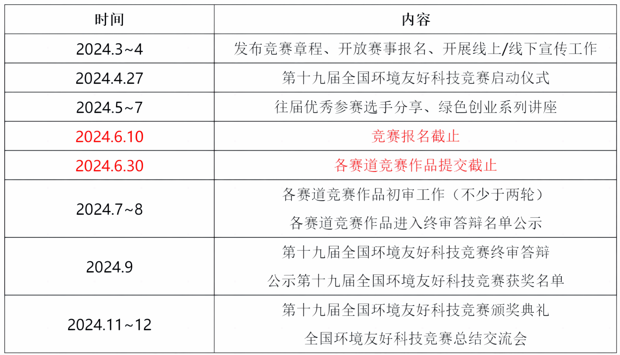 第十九届全国环境友好科技竞赛进度安排如下所示: