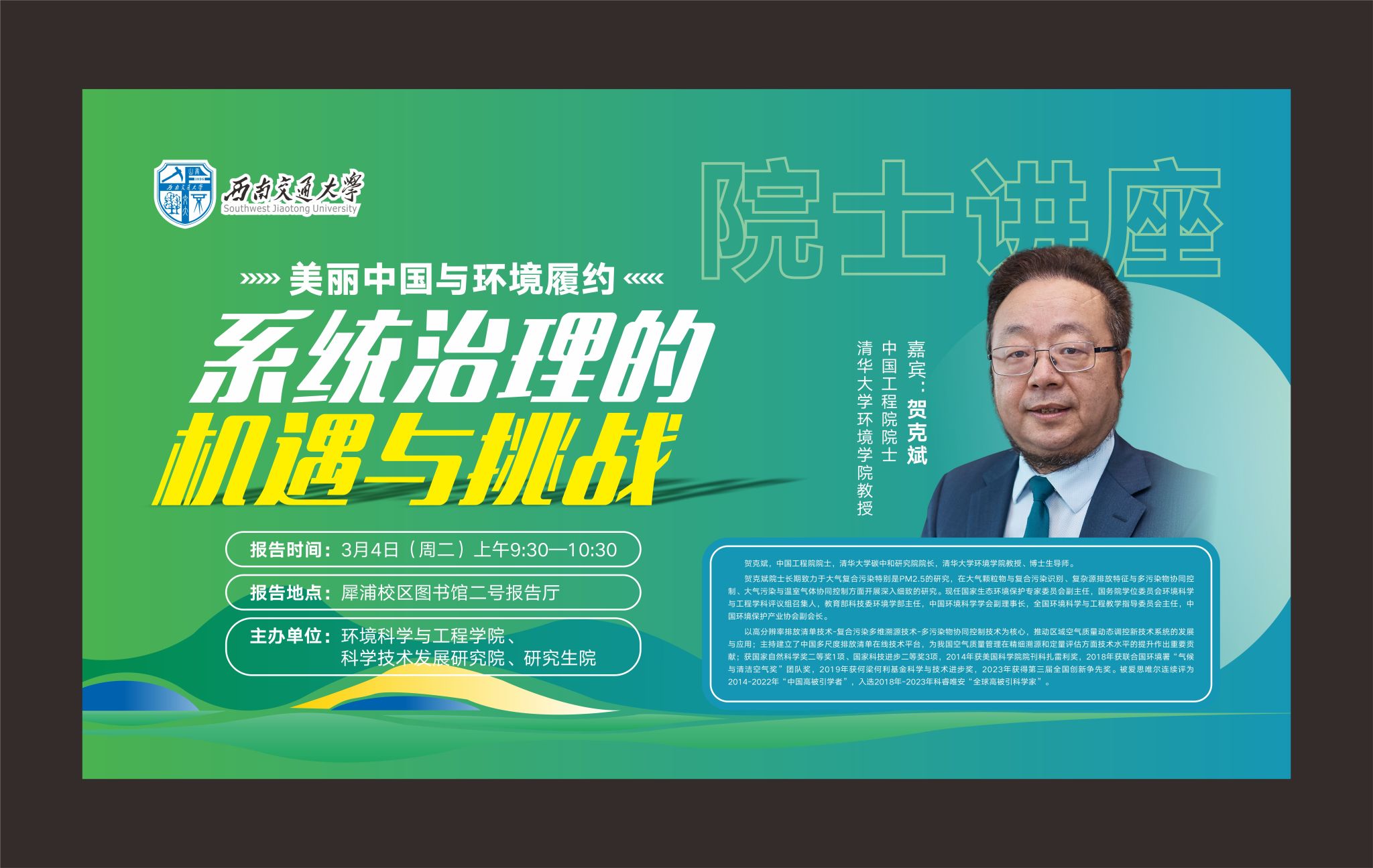 【院士讲座】贺克斌:美丽中国与环境履约:系统治理的机遇与挑战