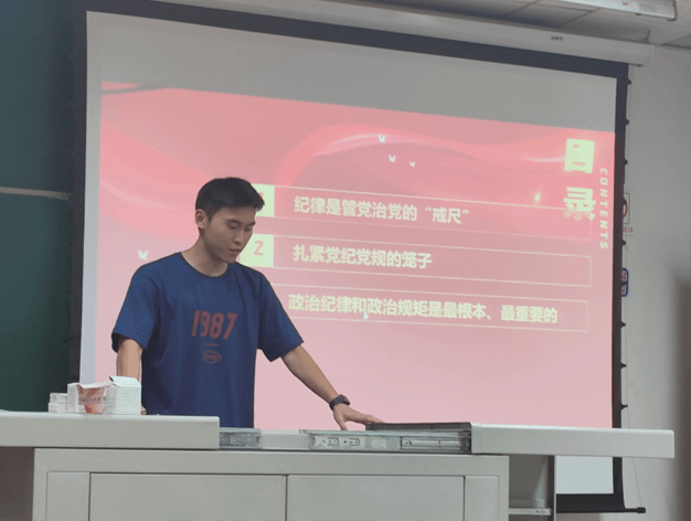 本次党日活动积极动员支部成员分享学习,共有4名同志在这次党日活动中以PPT的形式领学。首先由支部书记刘婷带领大家学习《中国共产党纪律处分条例》的主要内容,根据支委讨论的学习计划,本次活动先集体学习内容的三分之一,而后再安排后续的集体学习。