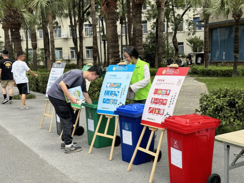 上午10时,在相关负责人的安排下,志愿者们首先将垃圾分类的宣传牌树立起来,以不同的板块为内容依次宣传各类型垃圾的分类方法,同时以对应颜色的垃圾桶为例与往来群众进行互动,展示垃圾桶的用途和标识,让师生直观了解垃圾分类的要求,增进对垃圾分类的理解。