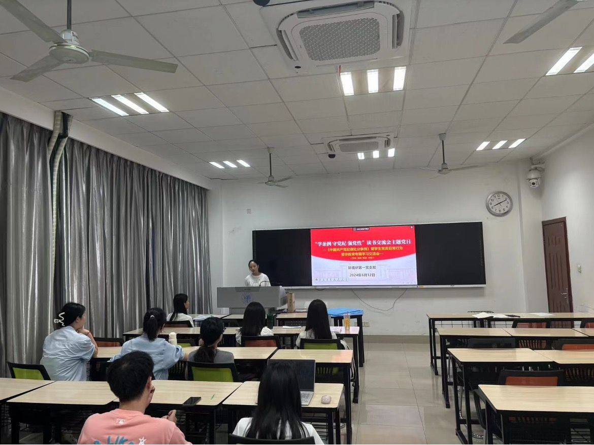 研22级环境第一党支部于6月12日20:00在X4129开展6月主题党日,主要是学习贯彻习近平总书记对学校思政课建设作出的重要指示精神、学习习近平总书记五四青年节寄语,并持续深入学习《中国共产党纪律处分条例》。本次活动由欧洪君同志主持。