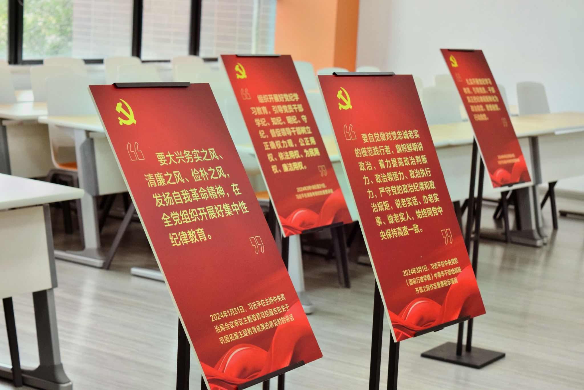 在活动场地内、教学连廊区域设置了党纪学习微展览,营造新葡京博彩官网