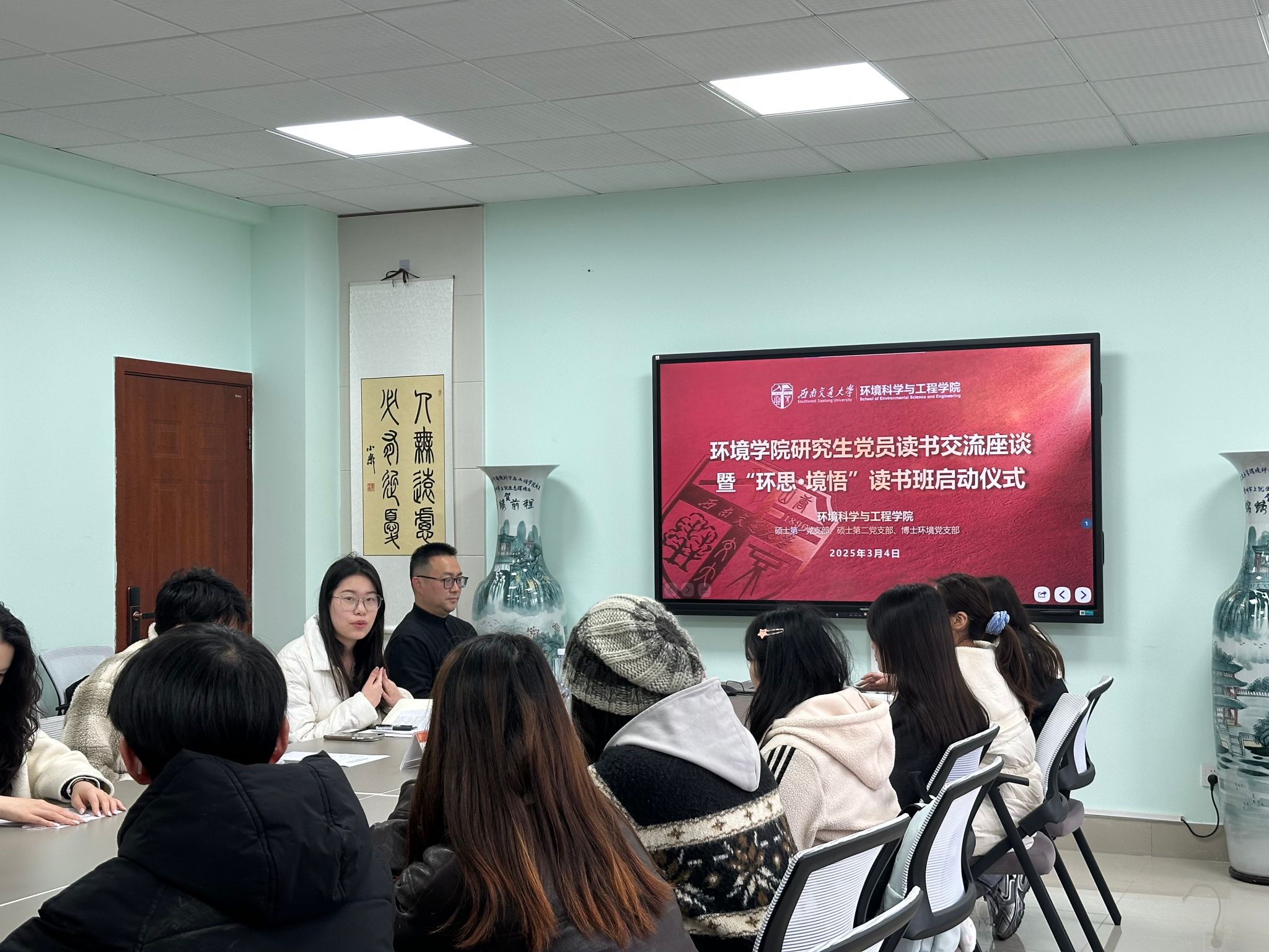 党委书记甘霖,辅导员赵瑞涵、黄泳桦,以及硕士第一、第二党支部及博士环境党支部学生党员到场参与。读书会由辅导员黄泳桦主持。