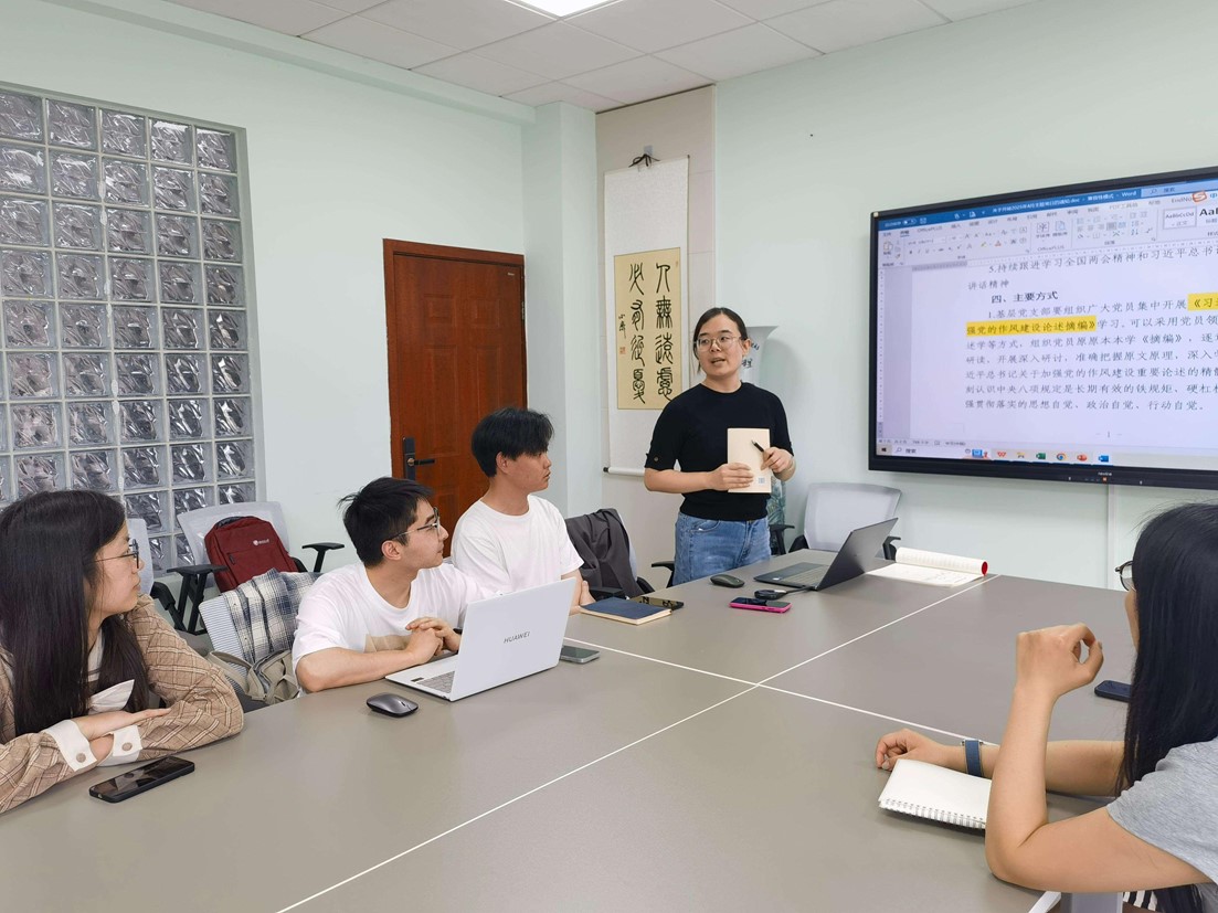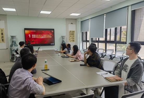 支部组织委员吕淼同志导学《习近平关于加强党的作风建设论述摘编》。组织支部党员原原本本逐章逐段认真研读,开展深入研讨,准确把握原文原理,深入学习领会习近平总书记关于加强党的作风建设重要论述的精髓要义,深刻认识中央八项规定是长期有效的铁规矩、硬杠杠,不断增强贯彻落实的思想自觉、政治自觉、行动自觉。
