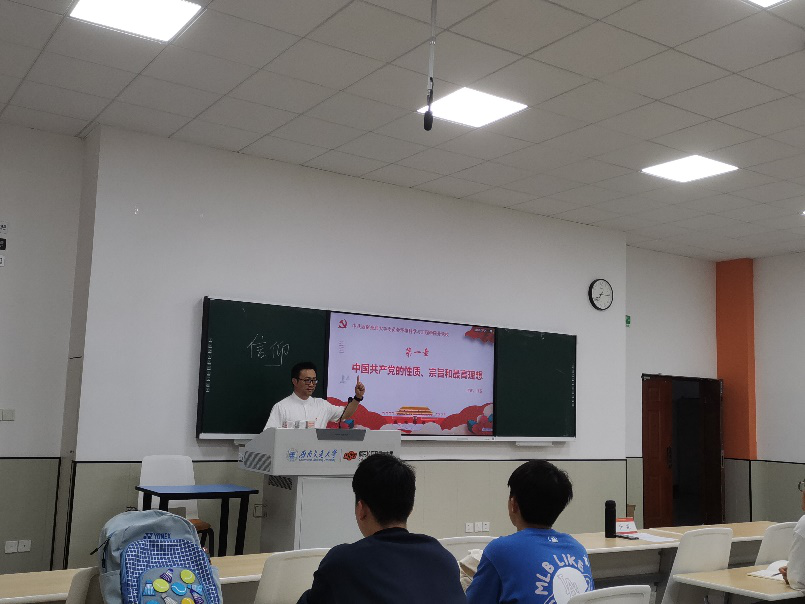 副院长张涵老师、专职组织员宋海涛老师、团委书记翟琦老师分别围绕“中国共产党的指导思想”“中国共产党党员的权利和义务”“中国共产党的组织、纪律和作风”“校纪校规、法律法规”主题进行授课。