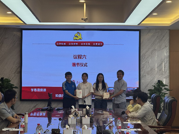 代表向与会人员赠送《新时代新思想新作为》一书,鼓励大家持续学习,用先进理论武装头脑,推动党建与学科发展工作不断进步。