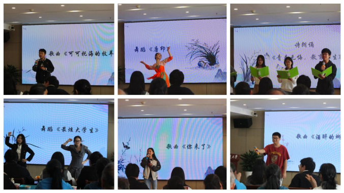 活动第二环节是节目汇演,同学们表演了情深意长的歌曲、活力四射的舞蹈、尊师重道的诗朗诵等精彩节目。一曲《酒醉的蝴蝶》将现场气氛推向高潮,展现了环境学子的青春热情。