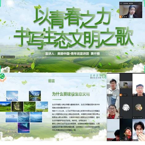 未来,“美丽中国·青年说”讲师团将继续以习近平新时代中国特色社会主义思想为指导,积极开展生态文明宣讲活动,传播绿色发展理念,引导更多青年学生结合专业实践投身报国伟业,为生态文明建设贡献更多青春力量。