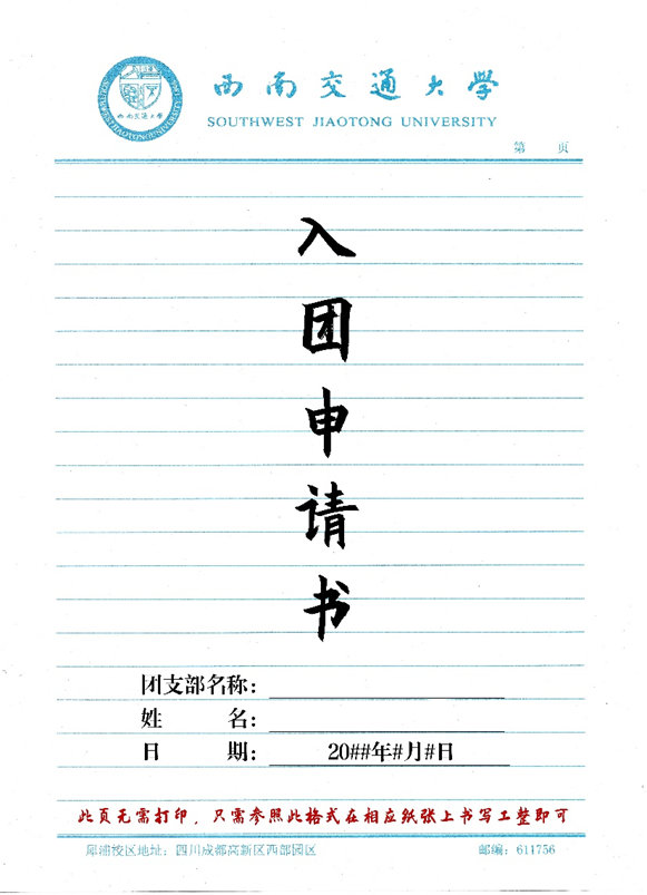 1.手写版:直接按照上述格式手写在交大信纸上即可