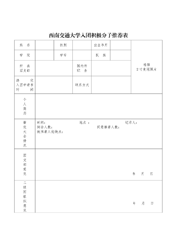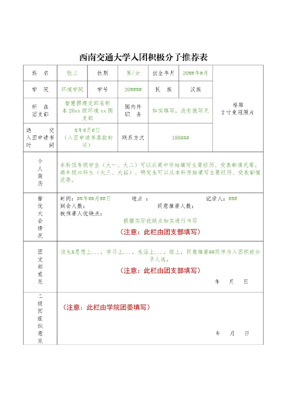 西南交通大学入团积极分子推荐表样例及撰写指南